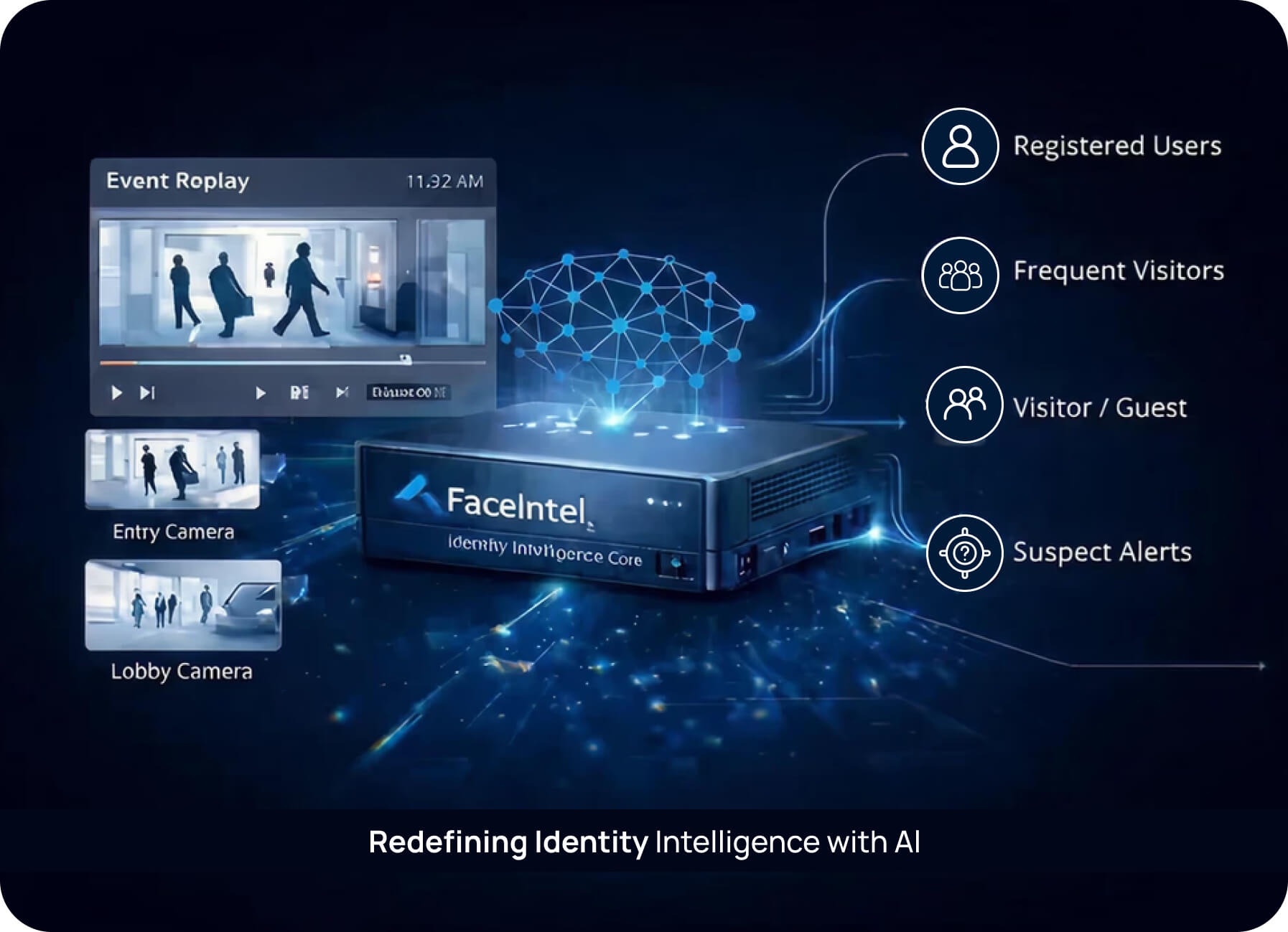 Facelntel runs continuous Al inference on live camera feeds on edge Al infrastructure, delivering real-time, identity-linked intelligence without manual review or cloud reliance.